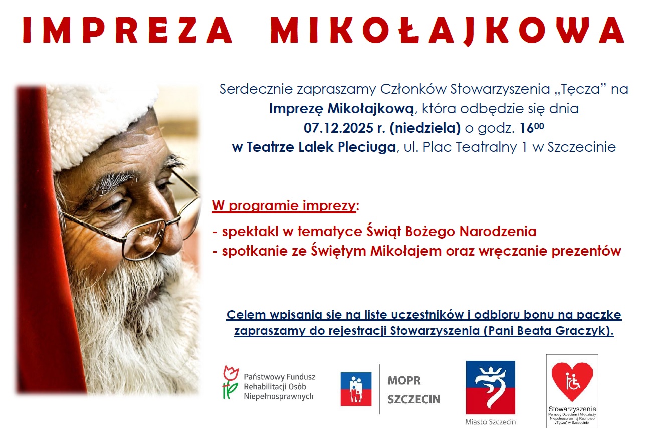 Już 7 grudnia 2025 r. (niedziela) w Teatrze Lalek „Pleciuga” o godzinie 16.00 odbędzie się Impreza Mikołajkowa o charakterze aktywizującym i integracyjnym, w trakcie której osoby z niepełnosprawnościami wraz z rodzinami będą miały możliwość wzięcia udziału we wspólnej zabawie podczas przedstawienia teatralnego o tematyce świątecznej oraz spotkania ze Świętym Mikołajem połączonego z wręczeniem prezentów dla uczestników imprezy.
